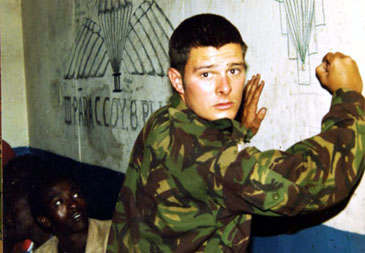 When I was 16 years old I joined the Parachute Regiment. I started taking pictures whilst on operational duties in Northern Ireland. I would keep the morale going within the platoon. I suppose I was unconsciously documenting my existence there. The 'happy-snaps' I collected are mostly self portraits and some are taken by fellow members in my platoon. My experiences in the Para's are varied. It was a family that I was part off and was never bullied. Good mates were formed and there was a great sense of belonging. I chose to leave this 'family' because I became disillusioned with being a 'soldier' and had got into something, whilst I was there, which was photography. The more I got into photography, the less I wanted to be a soldier. Being in the Parachute Regiment gave me my first taste of fear and taught me how to deal with it. I learnt how much to be hated from my times in Northern Ireland, but realized that it was the uniform and not my soul that was the blunt for such feelings of anger from the community that I patrolled around due to political situations. This was part of my informative years of growing up. When I finally left the military barracks that had kept me in line for five years, I felt a great sense of achievement, but only to realize that being in 'civvey street' was only just the beginning of a photographic journey I was going to discover. |