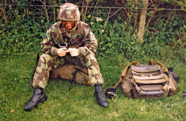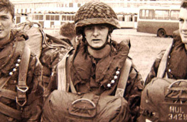 Soldiers awaiting a parachute jump, Farnborough Airfield, 1991