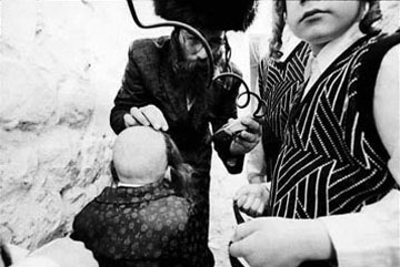 Right: The hair of a Hassidic boy is likened to the fruit of a newly planted sapling. Just as the fruit of a sapling must not be plucked for the first three years, the hair of Hassidic boys is also left untouched until their third birthday.