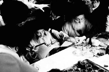 Left: Amongst Hassidim, a 'Tisch' refers to a gathering of Hassidim at their Rabbi's table from where he addresses his congregants.