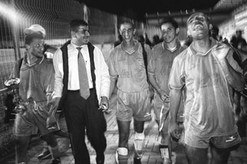 "Despite the hardships, Ramallah still sends players overseas for matches, and keen players still find places to play. Once in a while the Palestinian Football Federation even manages to arrange a friendly match between teams, usually seperated by Israeli blockade." Photographs by John Perkins. All Rights Reserved © foto8 2003 More by this author can be seen at - www.ripserve.com/perkins |