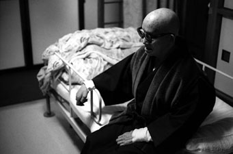 (Above) Mr Nambu sits on his bed as he waits for a health care worker to come help him to get dressed.