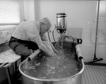 (Right) A bath of medicated solution is used to control skin conditions associated with Hansen's disease. |