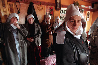 (This page: Mourning, grief and defiance at the funeral of two brothers killed in the village of Glodjane, March '98.)