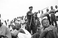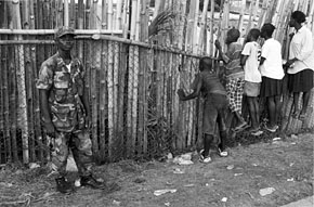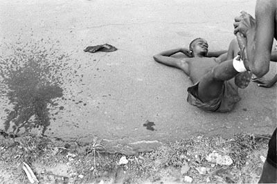 Scarred shins are a testimony to these conditions, and boots with holes are as common as bare feet. In a downtown graveyard, street kids gamble away the money they earn through collecting scrap. But their inevitable arguments are broken by the daily ritual of late afternoon soccer. | |||||||||