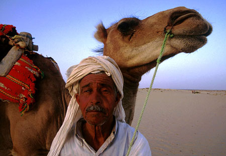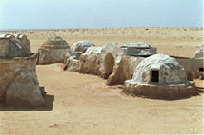 To the north some 30 km away lies Tozeur, a bustling Tunisian desert town which has grown around an oasis. 10 km to the south is Nefta, a more relaxed settlement with its own spectacular date palm plantation fed by natural springs at an oasis. Beyond this, continuing south lies the open road through the heat and sand until you reach Algeria, 40 km away. |