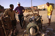 | Today we can relive this experience in the cinema watching Jedi Knights free Anakin Skywalker from the clutches of his evil slave master Watto, a duck-footed, pot-bellied scrap dealer who runs a spare parts service in Mos Espa for visiting spacecraft. Again life imitates fiction, this time in the person of Kamel Souilah, 38 years old, Nefta resident and scrap merchant. He is hardly duck-footed or pot-bellied, rather lean and nimble, but he does have a ready supply of spare parts for visiting Star Fleet enthusiasts. |