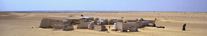 Kamel, the galactic Tunisian trader, has forged an agreement with the CTV to cart away the tons of discarded sets and props visiting film crews leave behind. All around his home on the edge of Nefta lies the movie booty from The Phantom Menace and other productions: Rolls Royce aircraft/spaceship engines, sections of old Starship cockpits, robots, missile heads, doors, carpentry and electronics from the set. | |||||||