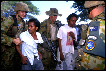 Arrest of two militiamen, rescued from the avenging crowd in Dili harbour.