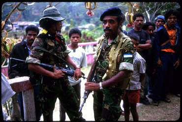 Falintil soldiers form a security detail for Xanana Gusmao.