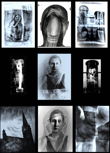Two or more negatives are put one on another in the traditional way first, and then I process them a little bit digitally. The montage is entitled "Pop-Sacrum" - "Biological-Figurativity" and forms part of my diploma work.